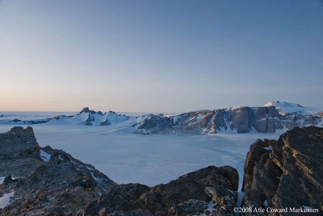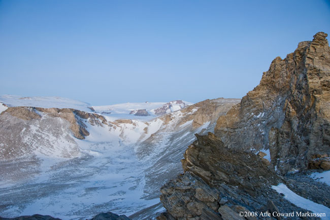Troll nede til venstre. Nonshøgda og Sofietoppen rett frem.