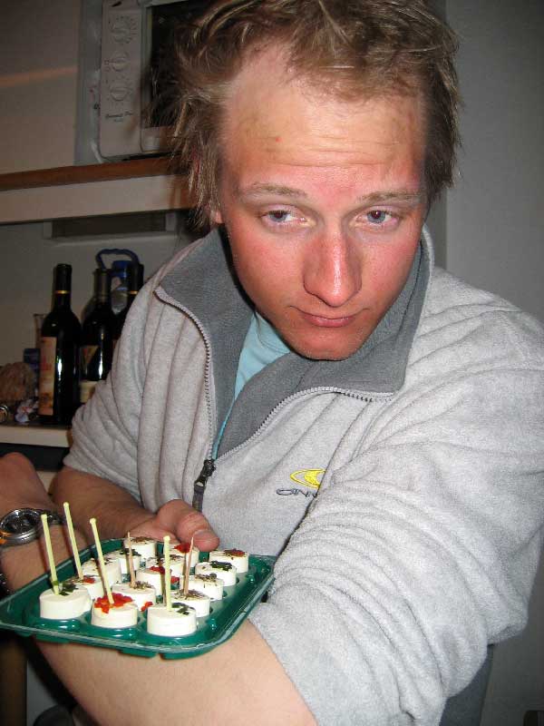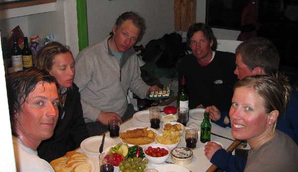 | Siste kveld. Bård og Merete tok på seg spanderbuksene og handlet inn store mengder ost, kjeks og vin. |