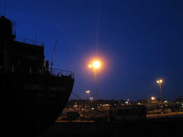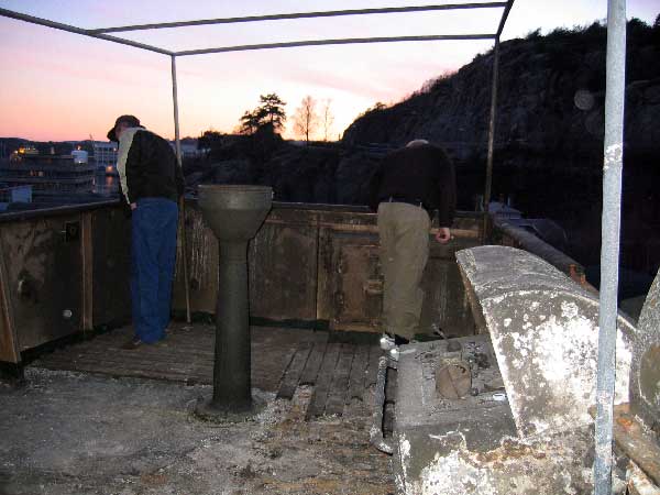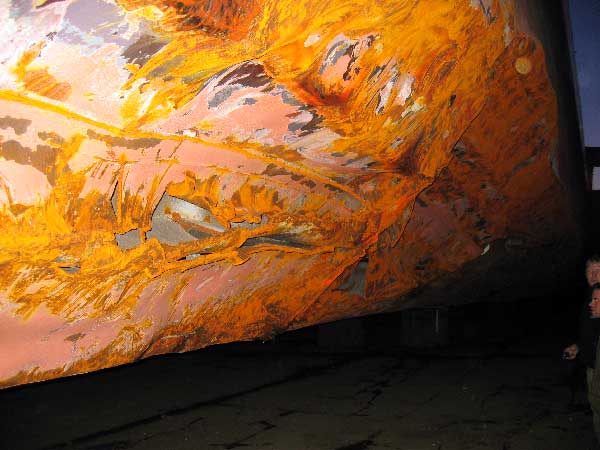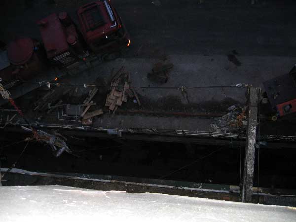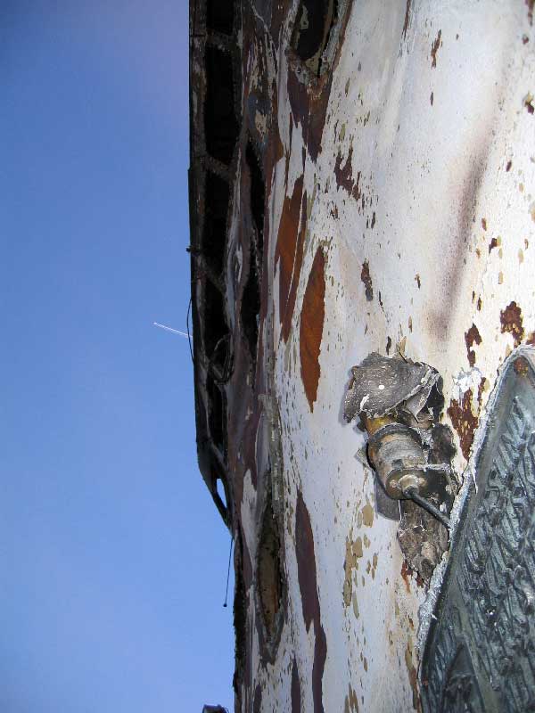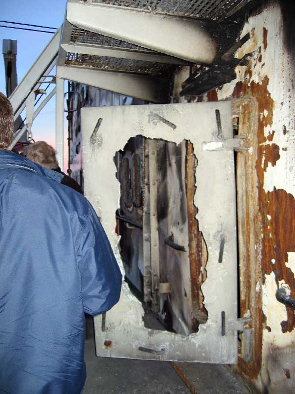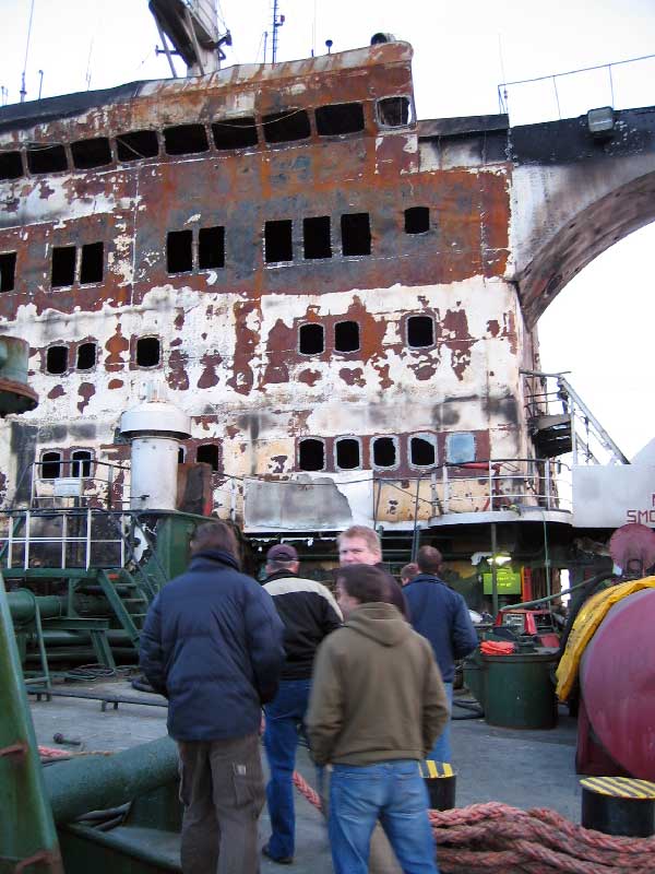 | Barbord side. Se nøye etter og dere ser restene etter livbåten... |
