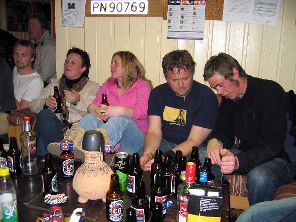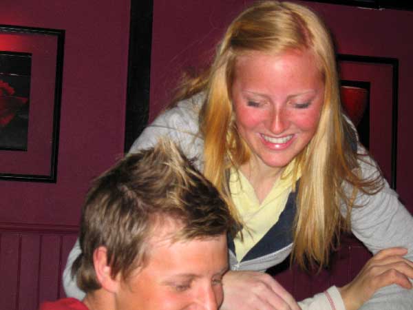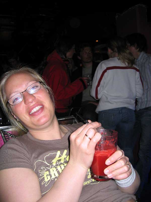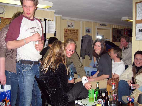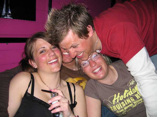 | Sindre prøver å stikke av fra beundrerinnene...han var møe populær denne kvelden....kan det ha noe å si med at han nesten ikke drakk? |