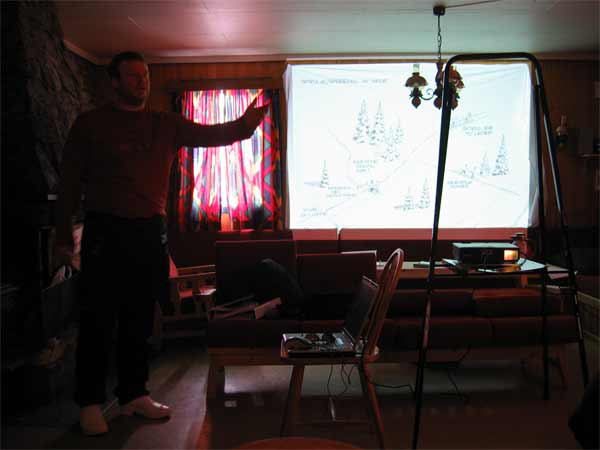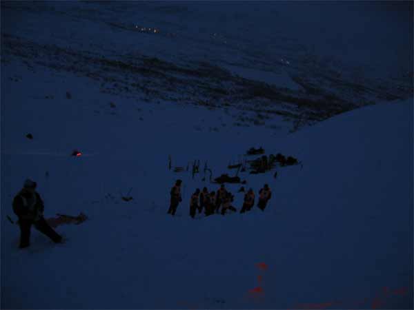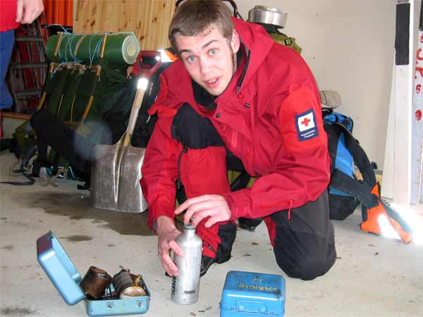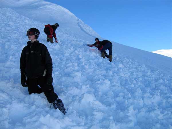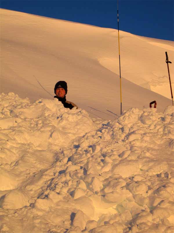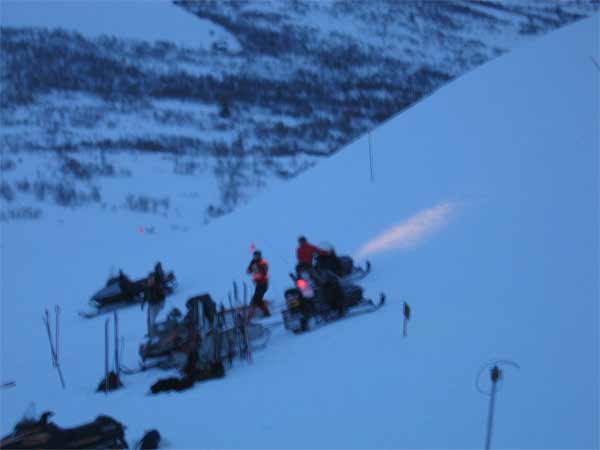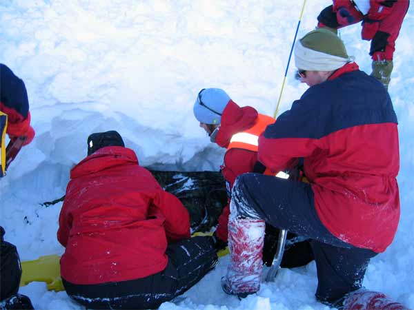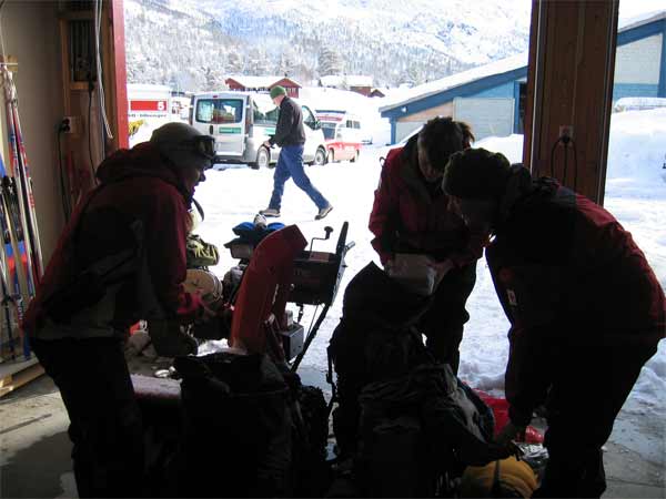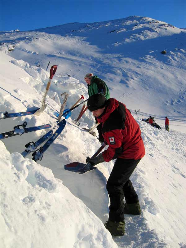 | Siste post, skredøvelse. Her fra forberedelsene. Kjetil blir gravd ned i bakgrunnen. |