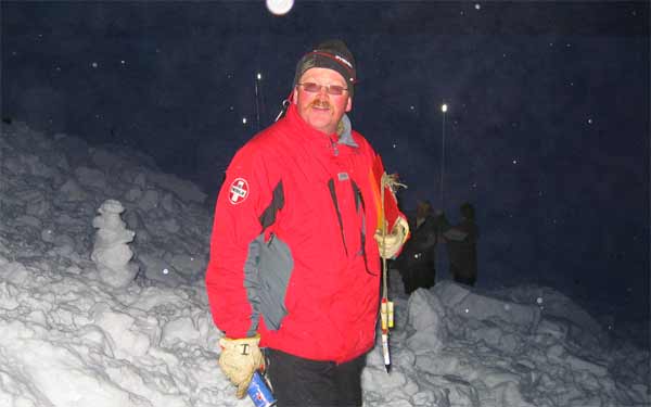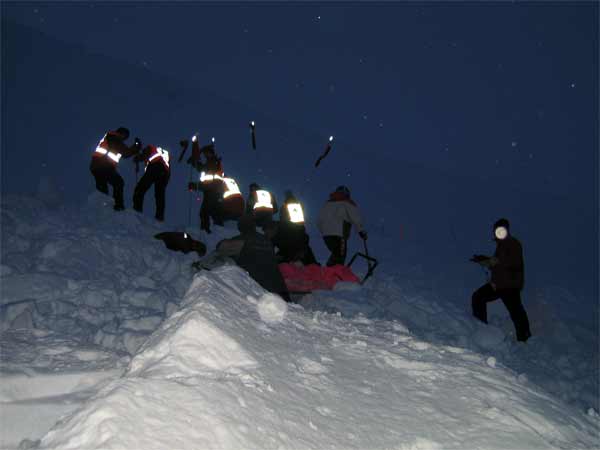 | Skredøvelse sammen med skisenteret. Torvald er sjefen og kursdeltakerne er kun innsatspersonell. |