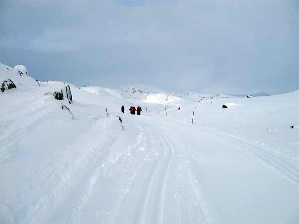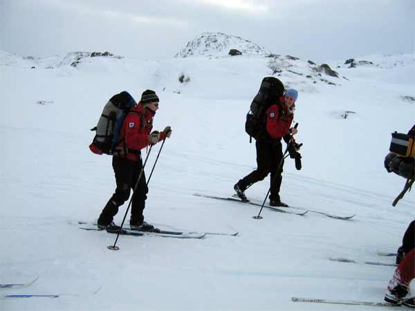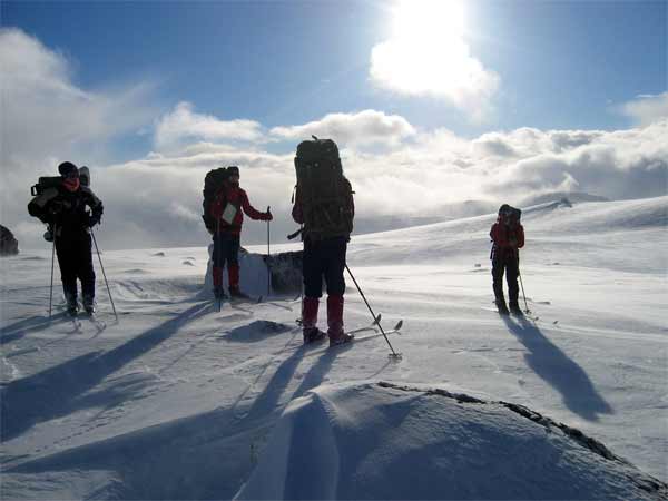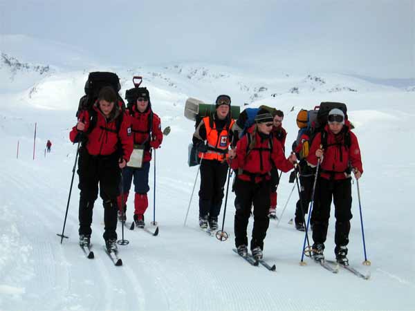 | Tradisjonen med å arrangere vinterkurs på høyere nivå på Hovden er tatt opp igjen. Fra onsdag 16. til søndag 20. februar var kursdeltakerne gjennom det de trenger for å kunne bli lagledere på vinterfjellet. Kursleder var Martin mens veiledere var Fredrik Kilander og jeg. Underveis møtte vi også mannskapskurset som dere ser av bildene. |