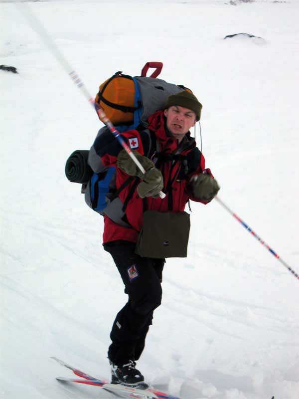 | Selv om fotografen her har pustet som en hval så ser dere vel at det er tungt å gå i skred. Daniel ser relativt varm ut. |