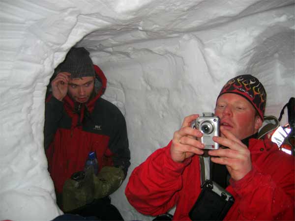 | Graving av snøhuler. Alle de forskjellige lagene skulle ha hver sin hule. |