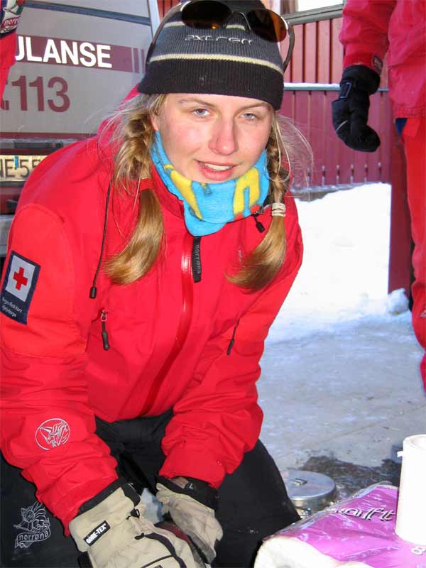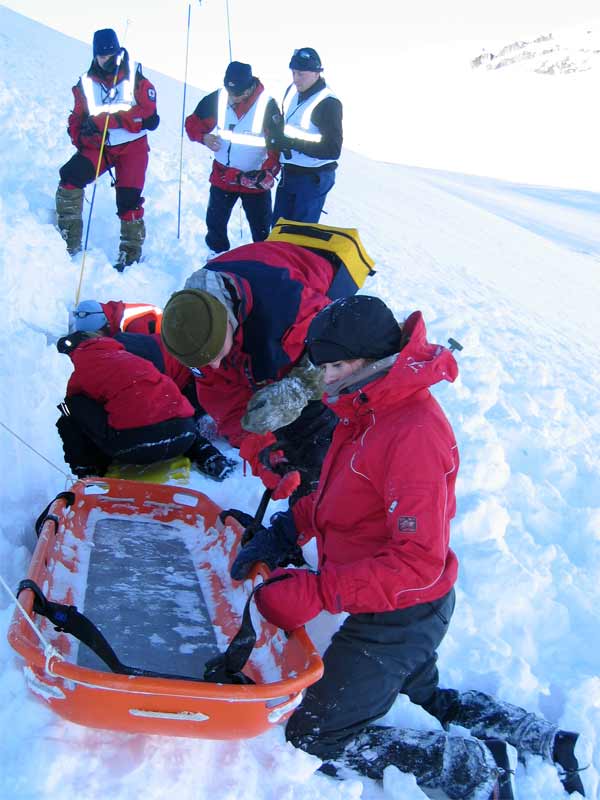 | Frakting av pasient ut av skredet. Mari har kontrollen. |