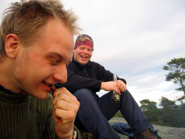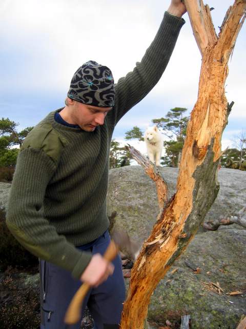 | Martin passer på røyken mens fly-øksa betjenes av Bård idag. |