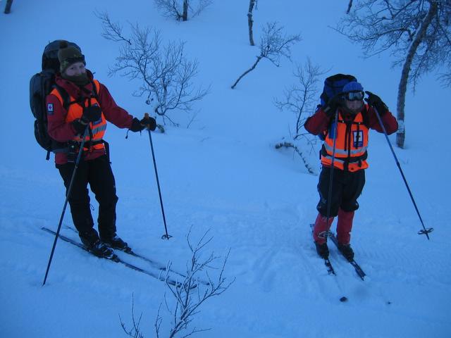 | Deltakerne, her Klausen og Magnar pakker sekken fredag. Skredsøker skaper hodebry. |