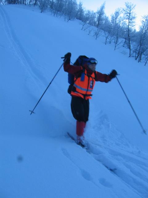 | Snøprofil. Kristin er leder og ser at det går rett for seg. |