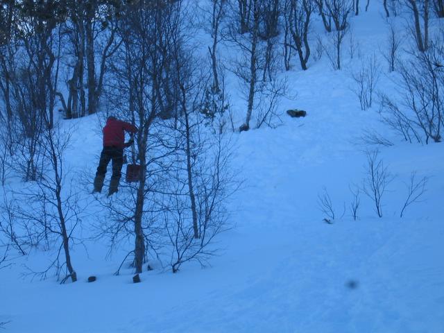 | Så var det plutselig søndag og klart for snøskredøvelse sammen med C-kurset. Ragnhild og Sveinung var gravere. |