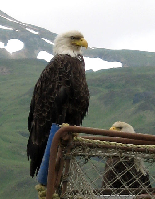 | Så fikk vi besøk ombord. Patriotisk ørn får man si. |