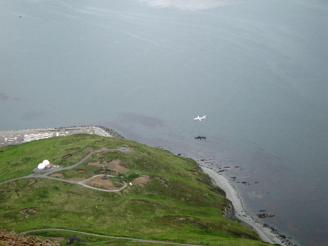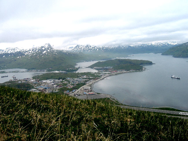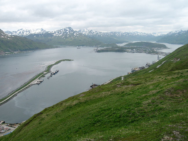 | Utsikt over flyplassen, litt av Dutch Harbor og Unalaska. |