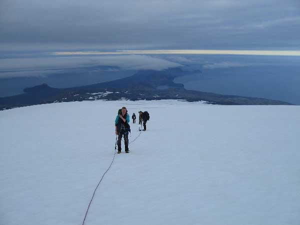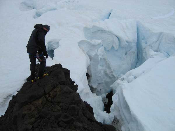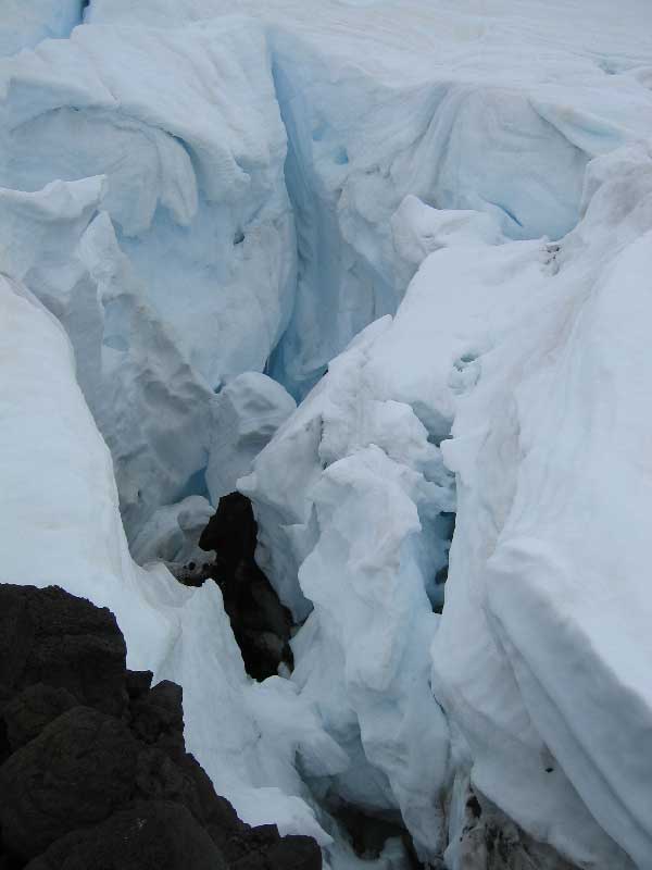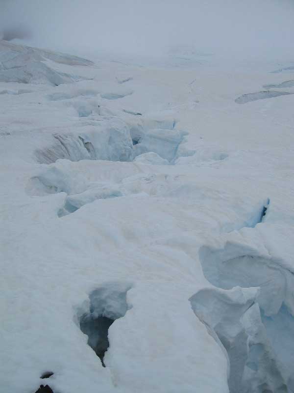 Endelig oppe på snøen. Dette er nederste del av Kronprins Olavs bre. |