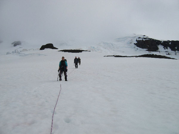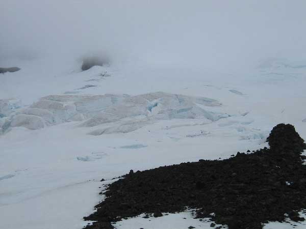 Fra Nunataken og oppover. Tåka ligger like tett etter to timer. |