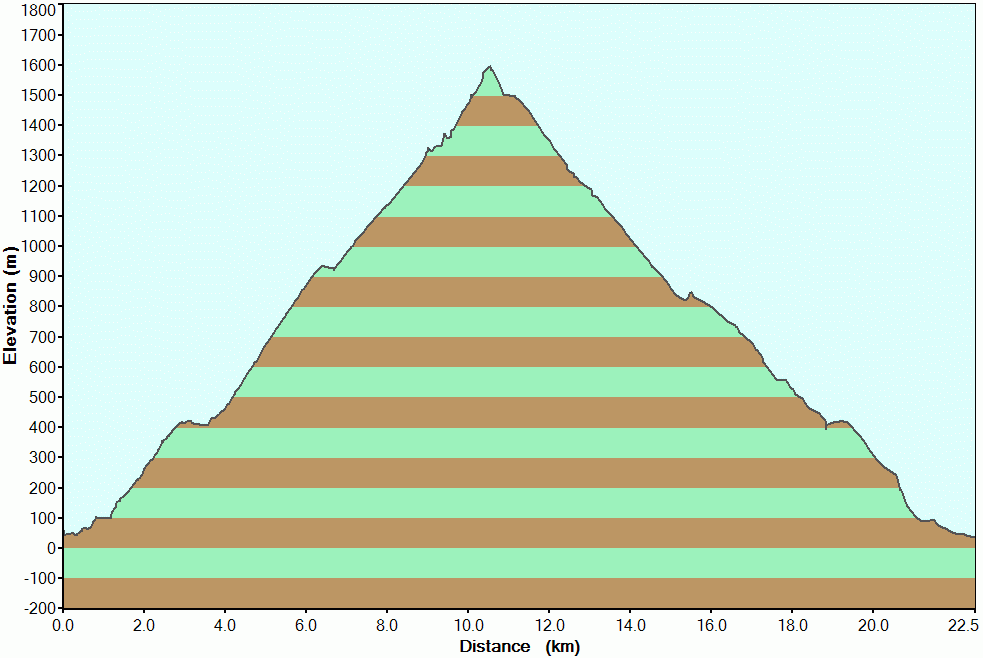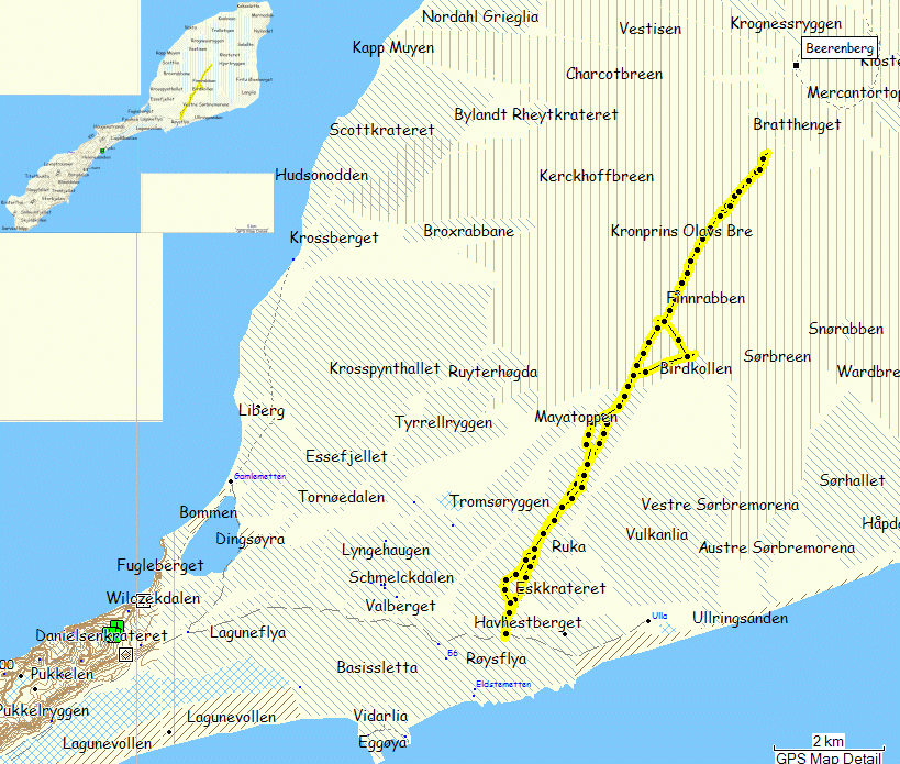 Høydeprofilen. Det var en fin tur, og vi var godt fornøyd med å få krysset av Nunataken på "Superkjentmannsmerket"...men vi skal opp, så vi prøver igjen! |